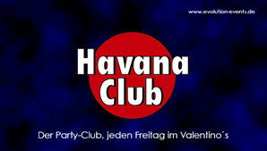 Dieser etablierte Party-Club spricht seit Jahren erfolgreich das gehobene Hamburger Party-Publikum an. Zuletzt gastierte der Havana Club in Hamburgs Top-Location, dem Valentino´s (September 2001 bis Januar 2002). Zur Zeit suchen wir für diese Veranstaltung eine neue Top-Adresse, um den Club, auch was die Location angeht, abwechslungsreich zu halten, Gespräche werden z.Zt. geführt. Wer zur Wiedereröffnung informiert werden möchte, sende uns eine email an: